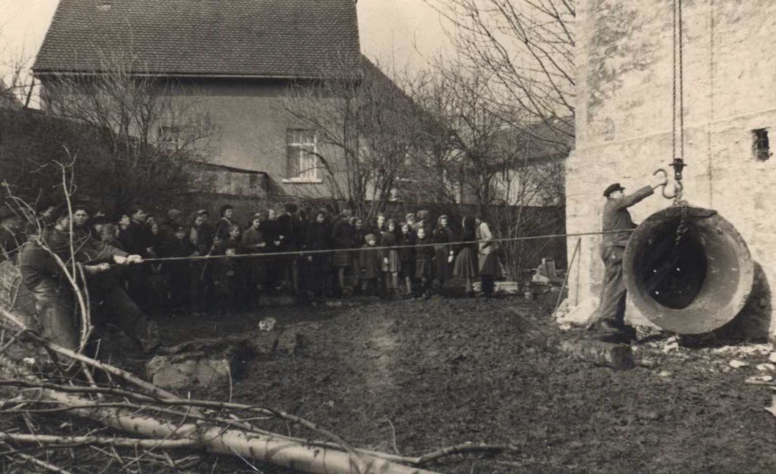 1955 Abnahme beim Einbau der 3 neuen Eisenglocken