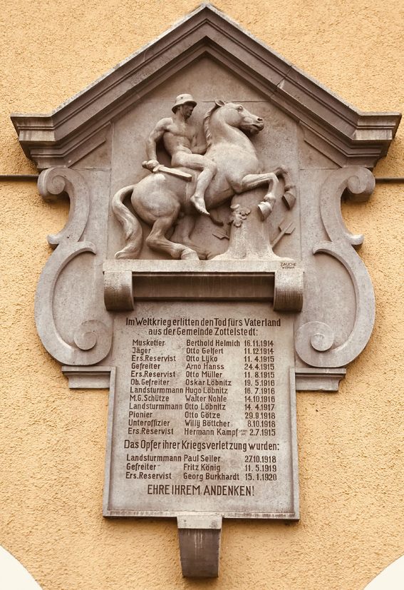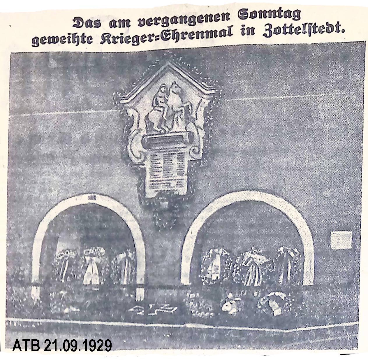 Das Denkmal erinnert an die in den Krieg befohlenen Väter und Söhne Zottelstedts, die diesen nicht überlebten.  Es sollte damals den Angehörigen bei ihrer Trauerbewältigung helfen.