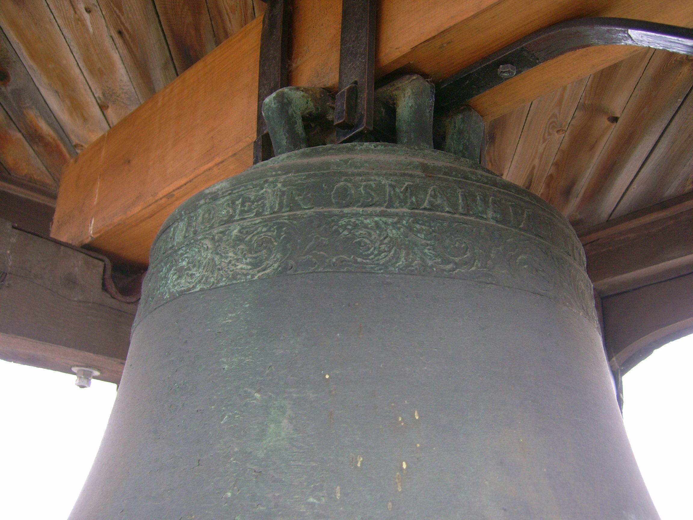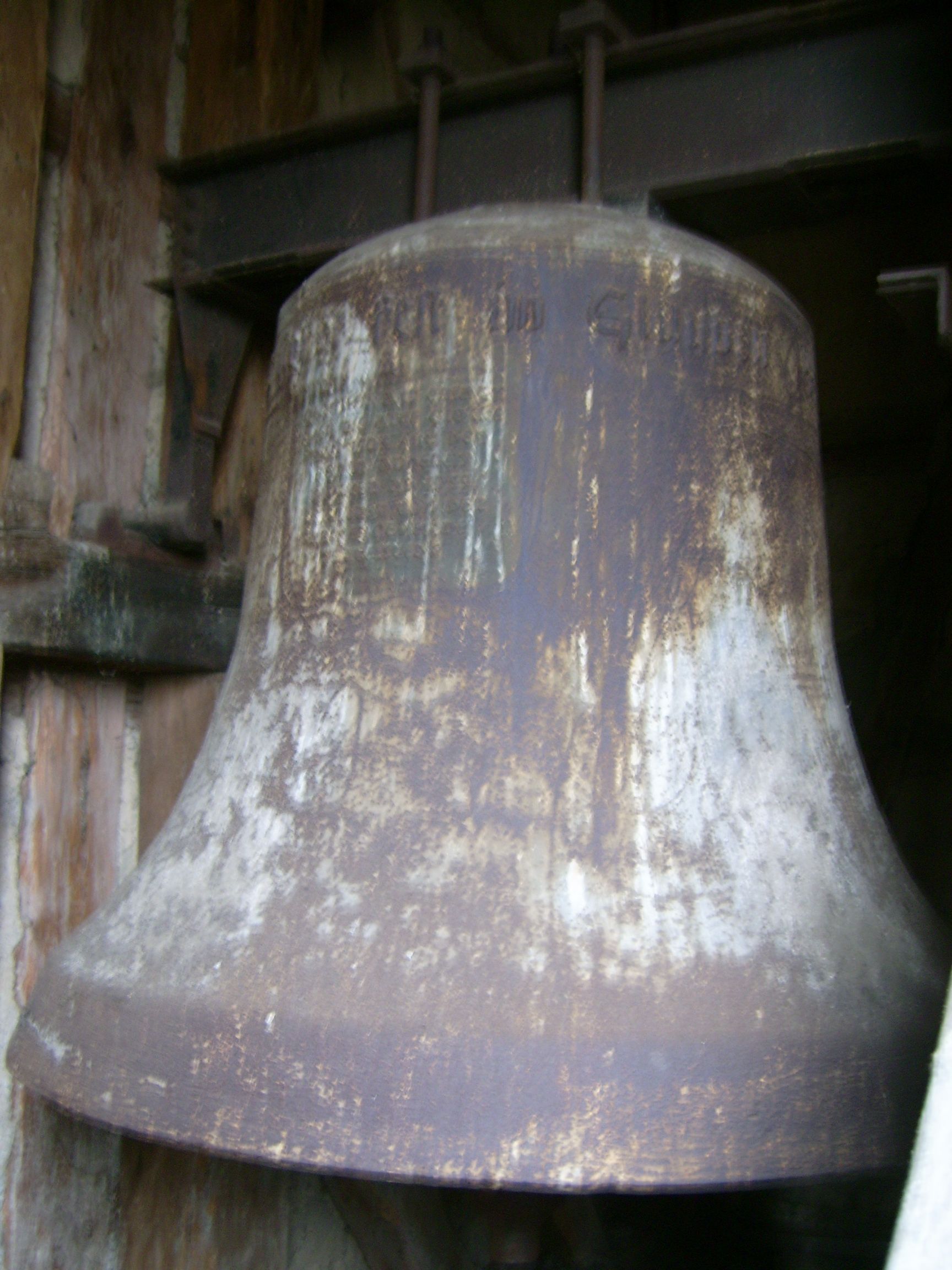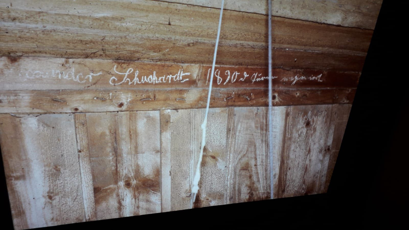 Alte Verkleidung des Uhrwerkes mit Inschrift