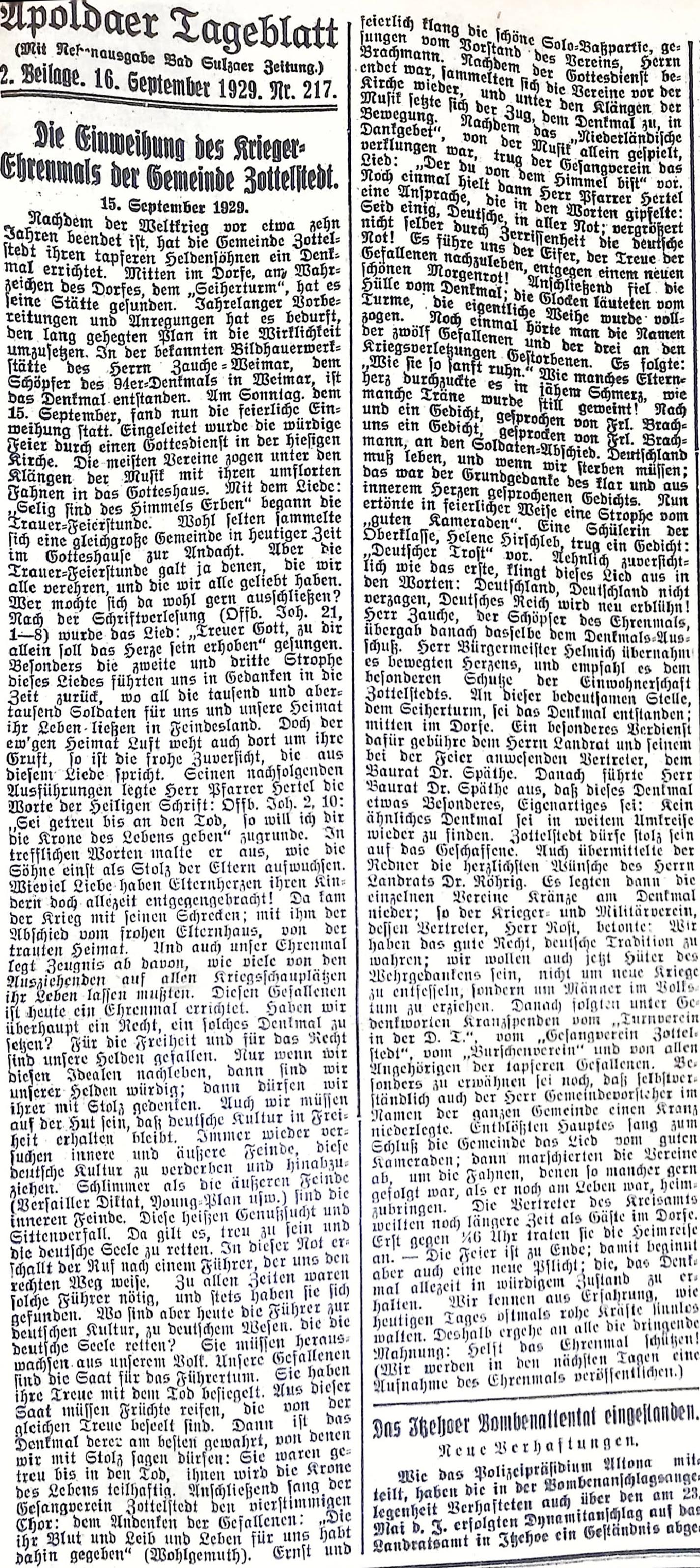 Wir wissen aber auch, dass die Entscheidungsträger, die den Krieg anzetteln, immer die Toten Soldaten nachträglich zu Helden stilisierten, wie auch im Zeitungsartikel von 1929.